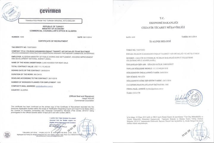 | Descriptions | : | Turnkey basis construction of total 3.000 houses (232.500 m2) 6-10-16 Stories, including design works, infrastructure works, landscaping and internal roads |